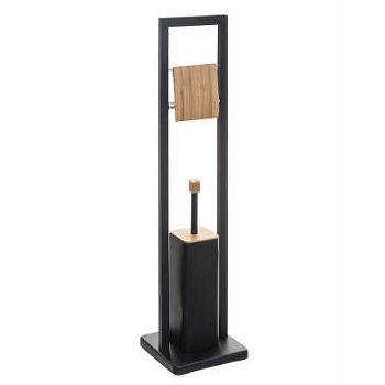 Crna metalna kanta za smeće s bambus poklopcem koji joj daje specifičan elegantan izgled. Opremljena pedalom što je čini izuzetno praktičnom te soft close sustavom. Volumen kante je 2,5L, a dimenzija 23x17x20,5 cm.