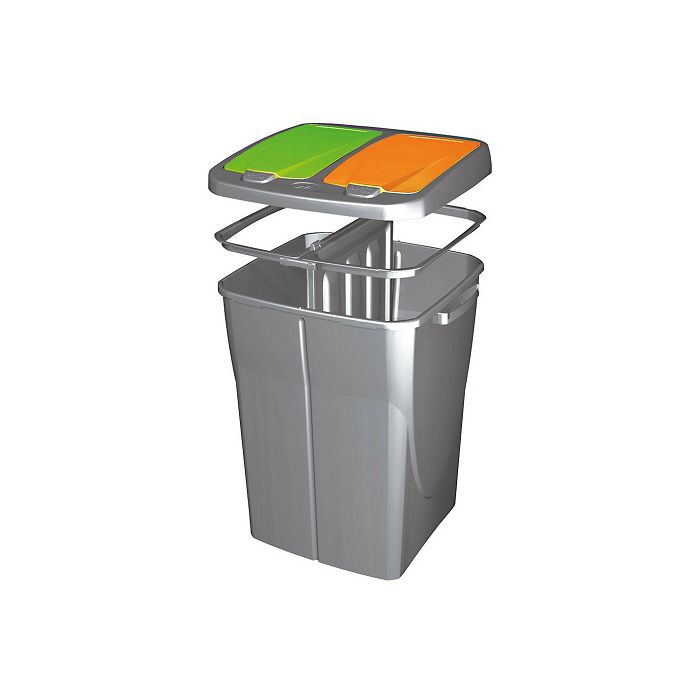 Jednostavna kanta za sortiranje otpada s 2 odvojena odjeljka i poklopcem u dvije boje za jednostavno prepoznavanje sortiranog otpada.