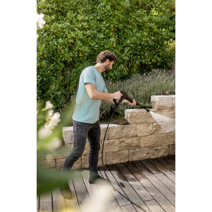 Vario Power mlazna cijev: od niskotlačnog mlaza sredstva za čišćenje do visokotlačnog mlaza uz kontinuiranu regulaciju tlaka jednostavnim okretanjem na mlaznoj cijevi. Idealna za čišćenje manjih površina oko kuće i u vrtu. Na primjer za uporabu na zi