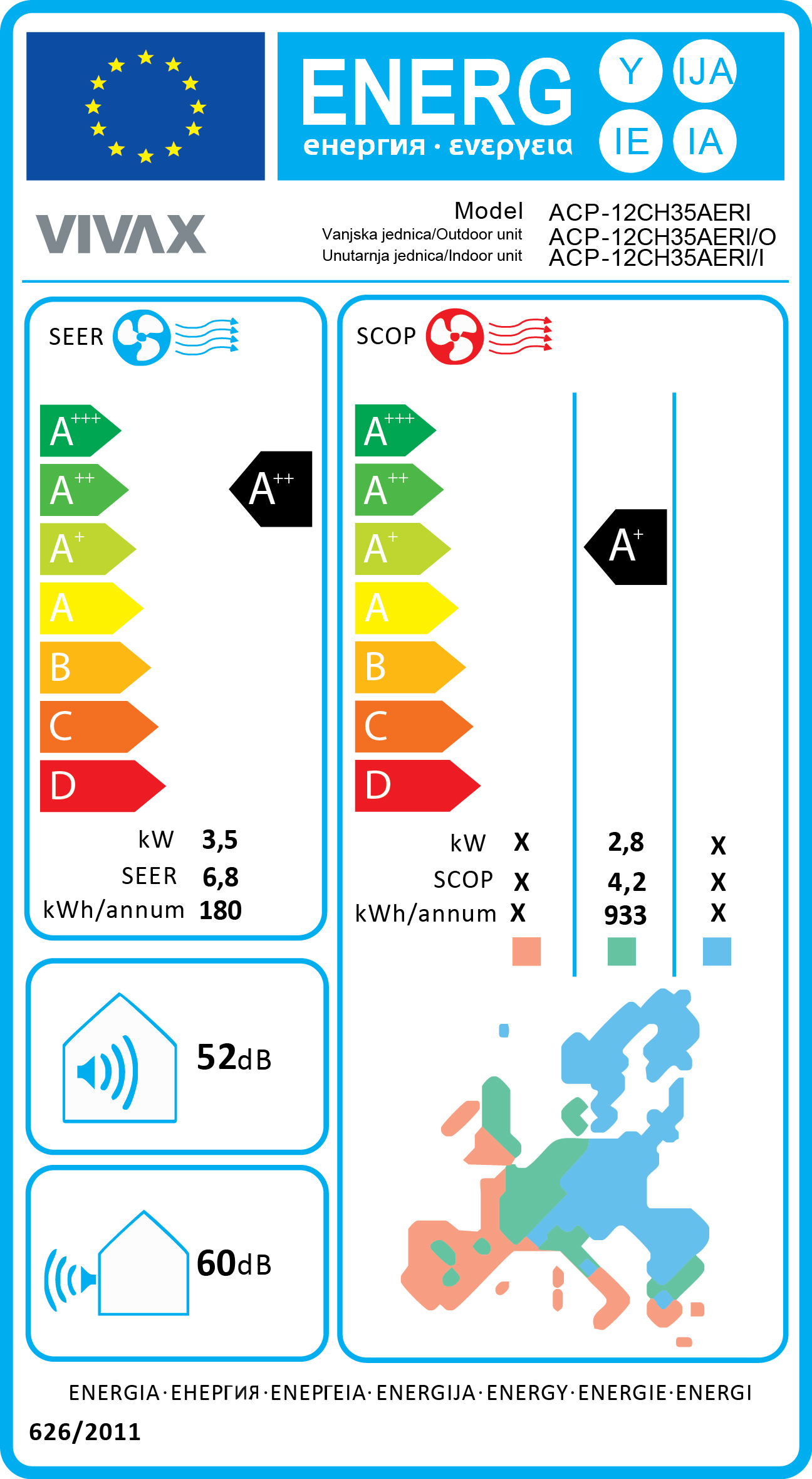 KLIMA UREĐAJ VIVAX ACP-12CH35AERI+ R32 3.52kW/3,81kW KOMPLET