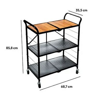 KOLICA KUHINJSKA SKLOPIVA 68.7X35.5X85.8CM METAL BAMBUS CRNA #