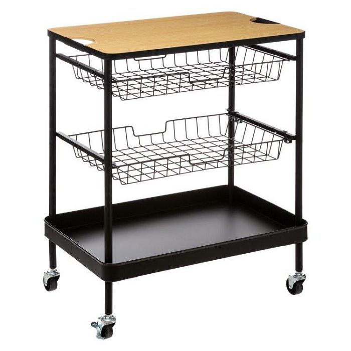 Metalna crna kolica s tri razine na koje možete pohraniti sve svoje kuhinjske potrepštine.