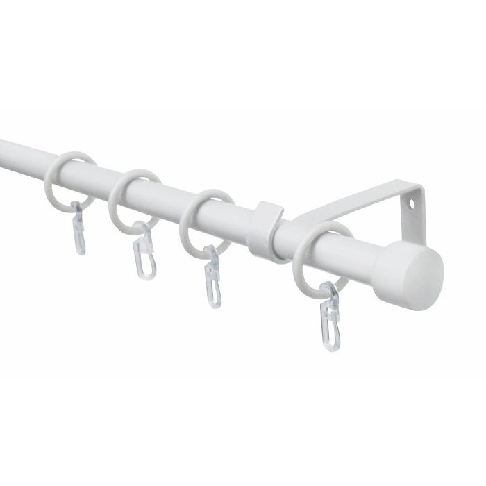 Gardinia bijela aluminijska karniša metalna, rastezljiva, u kompletu s metalnim nosačima, plastičnim završnim dijelovima, plastičnim prstenovima(24 kom) s plisiranim kukama i materijalom za pričvršćivanje.