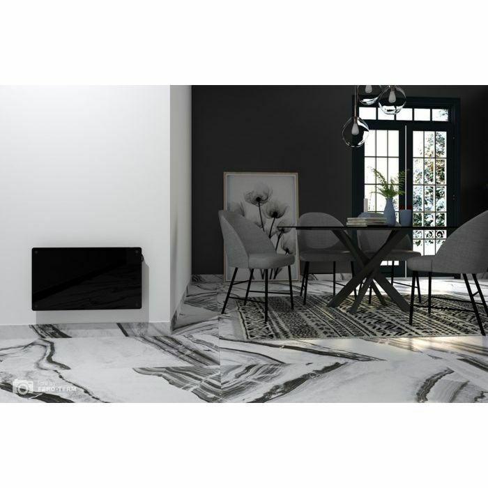 Terma Black konvektorska grijalica modernog dizajna sa staklenom crnom frontom. Snage 1500W, sa LED digitalnim termostatom i mogućnošću namještanja 24h ili 24/7 timera. Ugrađena zaštita od pregrijavanja. Priključni kabel od 1,6m te pribor za zidnu m