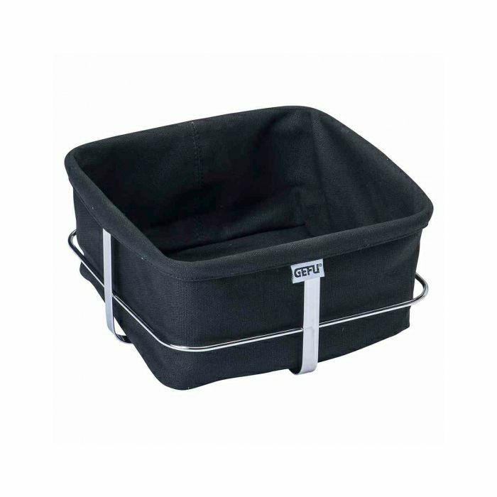 U elegantnom, jednostavnom okviru od nehrđajućeg čelika, crni pamučni umetak pruža šik postavku posluživanja kruha i kiflica.