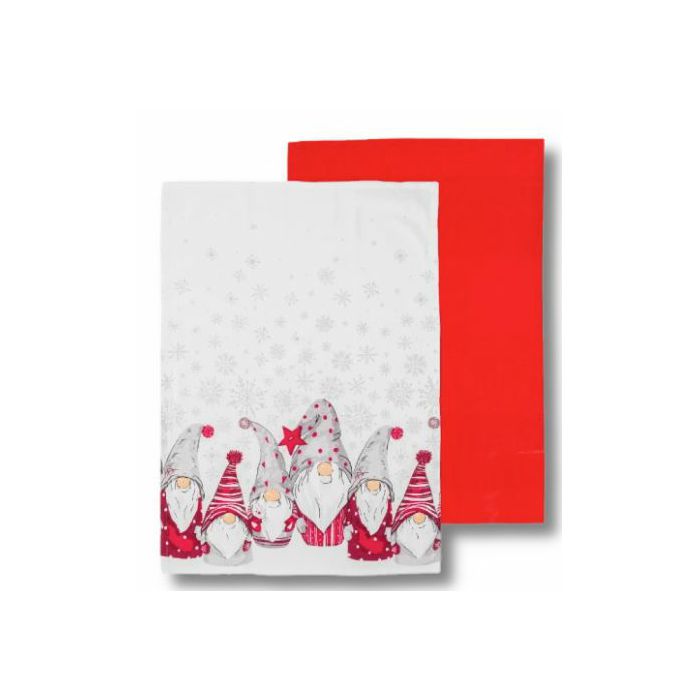 Unesite božićnu atmosferu i u Vašu kuhinju! Set dvije pamučne kuhinjske krpe sa zanimljivim božićnom dezenom. Jedna krpa u setu je jednobojna crvene ili siva s protkanim sjajnim nitima, a druga ima božićni motiv.