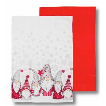 Unesite božićnu atmosferu i u Vašu kuhinju! Set dvije pamučne kuhinjske krpe sa zanimljivim božićnom dezenom. Jedna krpa u setu je jednobojna crvene ili siva s protkanim sjajnim nitima, a druga ima božićni motiv.