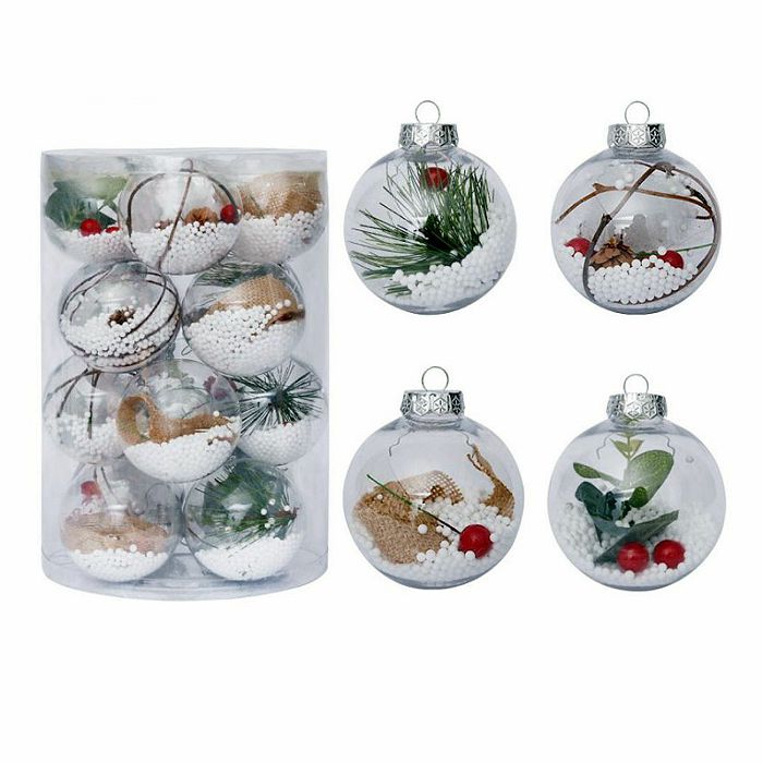 Na Božić nas asociraju miris cimeta, naranče i vanilije te prekrasne božićne dekoracije. Ukrasite vaše božićno drvce ovim prekrasnim kuglicama punjene raznim božićnim dekoracijama. Savršeni ukras koji će se dobro uklopiti s drugim ukrasima na božićno