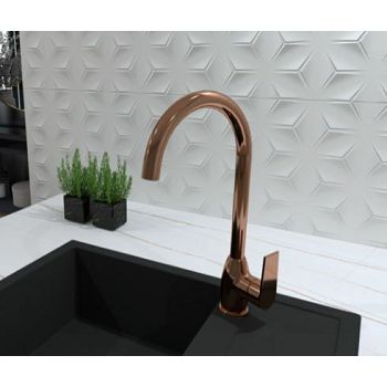 Voxort Tea Rose Gold miješalica za sudoper. Modernim dizajnom i elegantnom Rose Gold bojom uklopit će se u sofisticirane kuhinje i ambijente koje će podignuti na novu razinu. Izljevna cijev okreće se u rasponu od 360° što miješalicu čini vrlo praktič