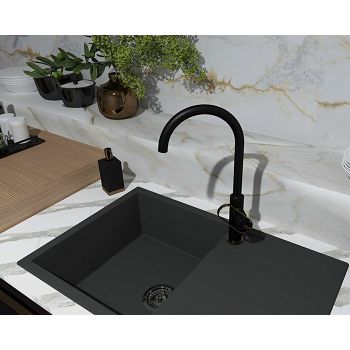 Voxort Tea Black visokotlačna miješalica za sudoper sa visokim i zaokretnim izljevom. Dolazi u kompletu sa dva priključna crijeva 3/8" x 50cm i priborom za montažu. Voxort Tea Black miješalica za sudoper je mat crne boje, izrađena od mesinga.