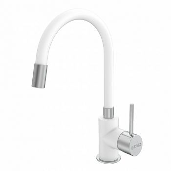 Voxort Tea White miješalica za sudoper. Modernim dizajnom i elegantnom bijelom bojom uklopit će se u sofisticirane kuhinje i ambijente koje će podignuti na novu razinu. Izljevna cijev okreće se u rasponu od 360° što miješalicu čini vrlo praktičnom za