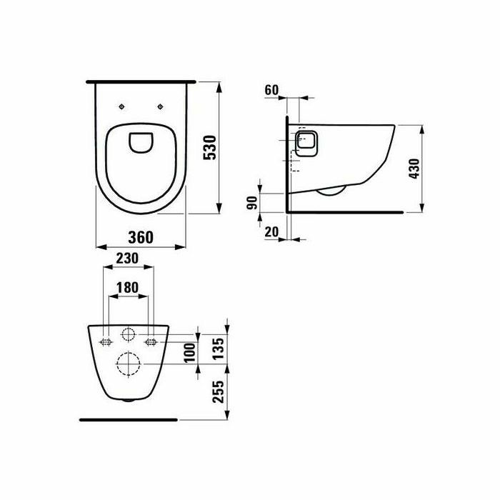 Laufen Pro New viseća toaletna školjka odlične kvalitete i trajnosti te jednostavnog i klasičnog dizajna radi kojega se uklapa u izgled svakog toaleta i kupaonice u stambenim zgradama ili javnim prostorima. Dimenzije su širina 36 cm, dubina 53 cm i v