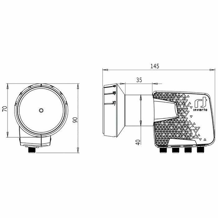 Quad LNB, opseg 10.7- 12.75 Ghz , LO: 9.75 - 10.6 GHz, šum 0,3 db ( max. 0,7dB ), vodootporan, 4 izlaza za 4 prijemnika, izlazna impedanca 75 ?, F- konektor, 40 mm vrat, radna temperatura -30 ... + 60 °C