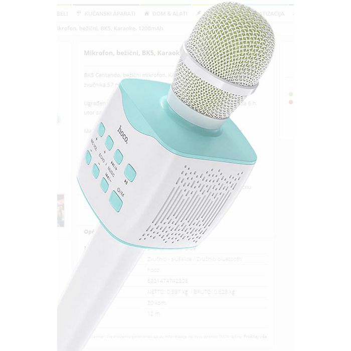 BK5 Cantando, bežični mikrofon, KARAOKE, Bluetooth 5.0, promjer zvučnika 57 mm, snaga 5 W