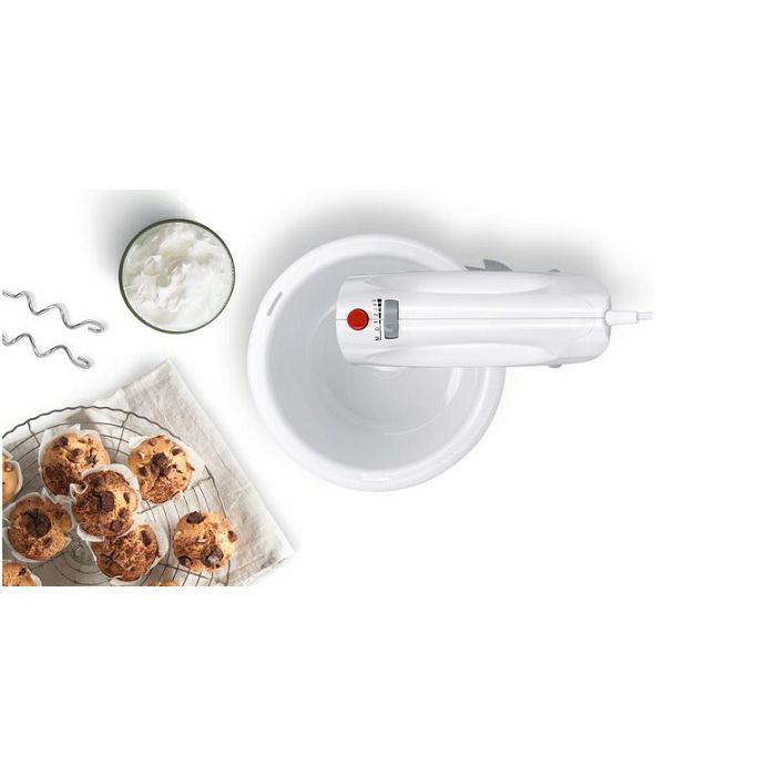 Ručni mikser savršeno pristaje vašem dlanu — uključuje posebnu posudu s podloškom