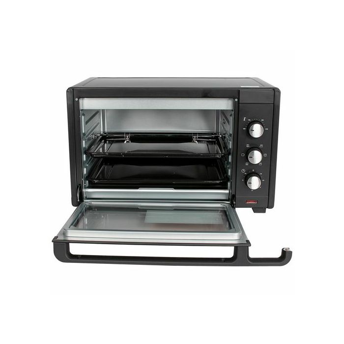 Mini pećnica sa grillom, snaga 2000 W, zapremina 45 lit., podesiva temperatura pečenja 100 - 230 °C, odabir 6 načina rada, 60-minutnim timer, dvostruko ostakljena vrata, unutarnje osvjetljenje, grill, grijač od nehrđajućeg čelika, dimenzije 560 x 420