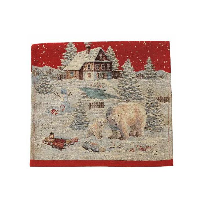 NADSTOLJAK BOŽIĆNI JOY GOLD 40x100 MEDVJED ISPRED KUĆE1058