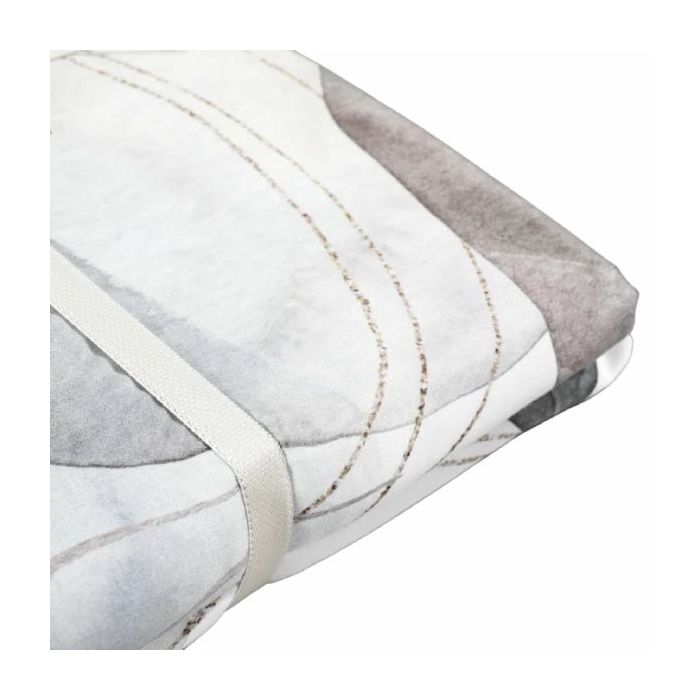 Set plahti s jastučnicama Rivoli izrađen od pamučnog satena profinjenog dezena u zlatnim i zelenim tonovima koji odiše elegancijom. Apstraktni motivi i efekt ručno oslikane teksture unose dašak umjetnosti u svaku spavaću sobu. Gornja str