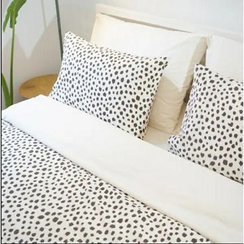 Set navlake za poplun i jastučnica Leo izrađen je od finog pamučnog perkala koji je izrazito ugodan na koži, a dolazi u prepoznatljivom leopard printu smeđe boje na bež podlozi. Pamučni perkal je prozračan i lagan, što ga čini idealnim izborom za to