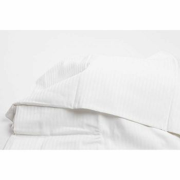 Navlaka za poplun od finog pamučnog satena s uzorkom pruga širine 2 cm. Mekana na dodir i sjajnog izgleda, navlaka se zatvara na duboku preklop i idealna je za korištenje u turizmu.
