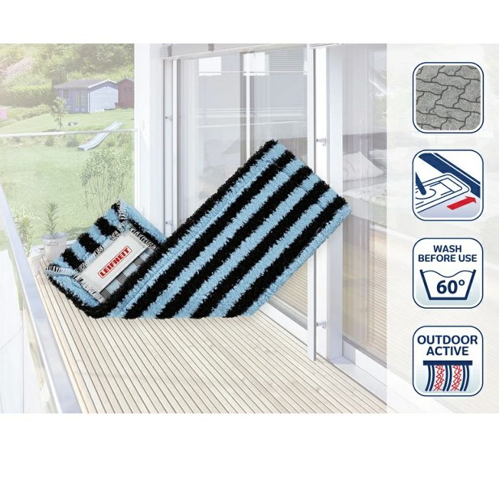 Navlaka je izrađena od mikrovlakana dokazane kvalitete čije čekinje uklanjaju prljavštinu i iz najsitnijih šupljina. Idealna je za čišćenje svih glatkih podova. Periva je na 60 C° i ne gubi snagu čišćenja nakon ponovljenih pranja. Širina brisanja: 42