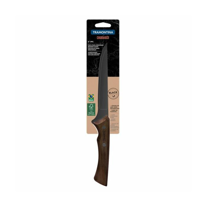 Za pripremu i rezanje mesa za vaš roštilj, Tramontina Churrasco Black nož za otkoštavanje s pocrnjelom oštricom od nehrđajućeg čelika i drvenom drškom od 6 inča neophodan je u vašem setu noževa.