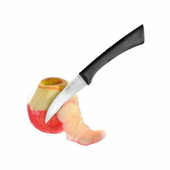 Zakrivljeni oblik noža za rezanje čini ga idealnim za guljenje krumpira i voća. Izuzetno lagana/izuzetno oštra ergonomska plastična ručka s gumiranom donjom stranom za sigurno držanje, duljina oštrice 8 cm