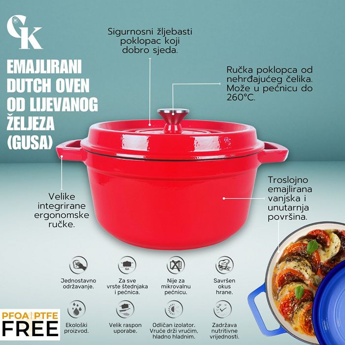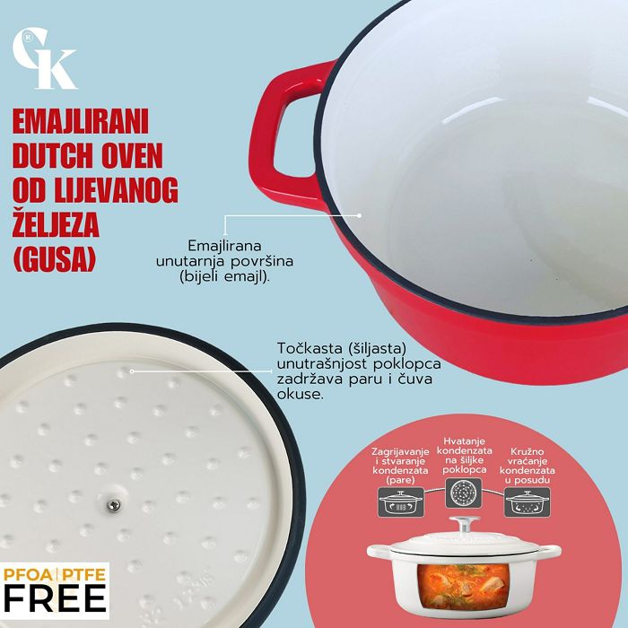 OKRUGLI PEKAČ CAST IRON DUTCH OVEN CRVENI 32 CM 8.9L GRIL KING
