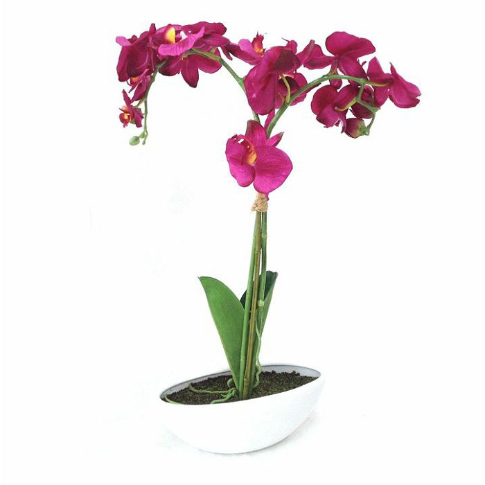 Ove umjetne orhideje visine 65 cm smještene su u modernu bijelu teglicu, što ih čini jednostavnim rješenjem za ukrašavanje doma ili ureda.
