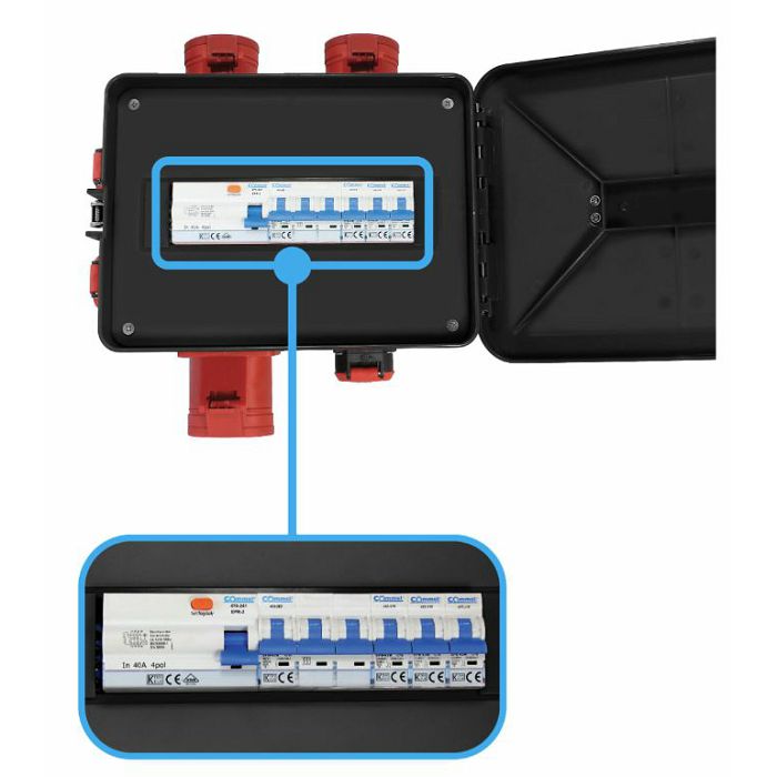 KUTIJA TRACON SA STALKOM I ZAŠTITOM TDB03-12MVA : RCCB,MCB,OUT:4xSCHUKO+2x16A(3P+N+E)+1x32A(3P+N+E