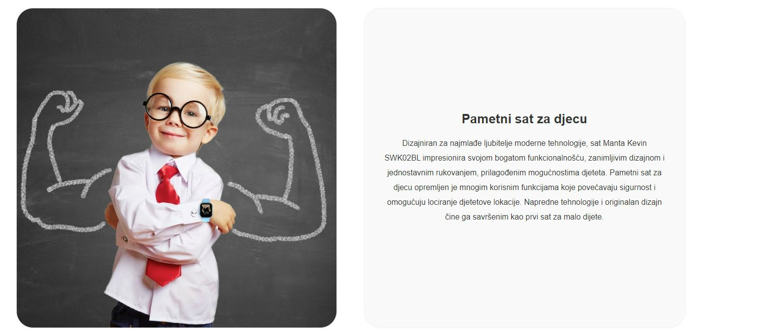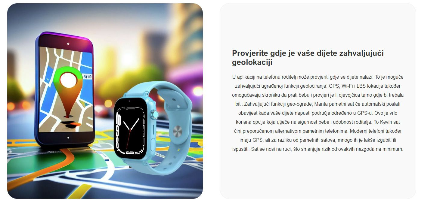 PAMETNI SAT ZA DJECU MANTA, SIM, GPS, TELEFON, KAMERA, IP65, PLAVI KEVIN SWK02BL