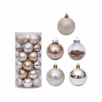 Set od 30 kugli za bor u toplim bakrenim, zelenim, smeđim i bijelim tonovima unosi prirodnu eleganciju u blagdansku dekoraciju.