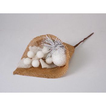 PIK DEKORATIVNI S BOBICAMA U KORNETU OD JUTE 28 CM NATUR BIJELA