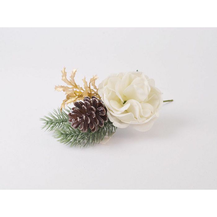PIK RUŽA S BOROVINOM 20 CM BIJELA