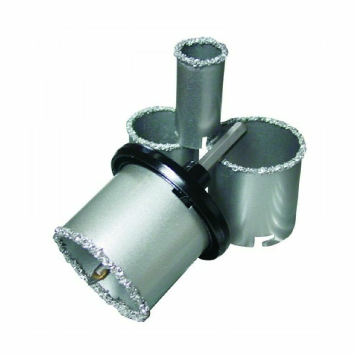 Set se sastoji od: 1 diska sa šipkom za pričvršćivanje svrdla i 4 zamjenjive svrdla (promjera 33, 53, 67 i 73 mm).