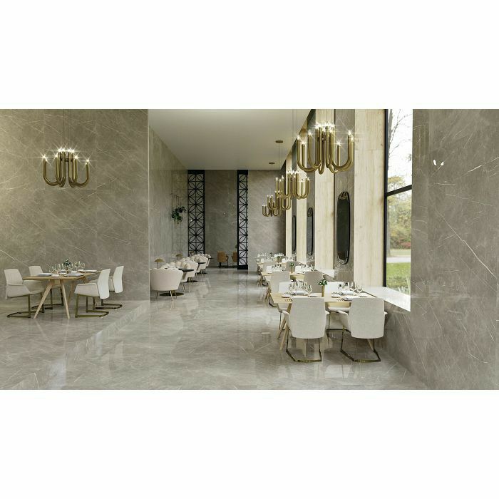 Bayona Ivory Pulido rectificado 2400x120 su podne/zidne pločice u dizajnu mramora i sjajnom površinom.