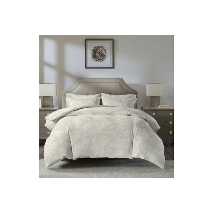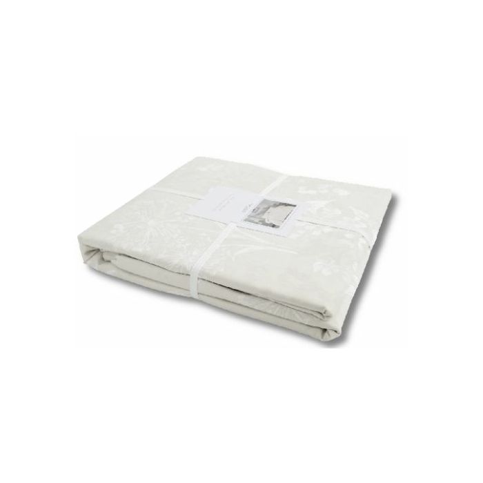 Set gornje plahte s jastučnicama Daisy izrađen je od finog pamučnog satena, mekan na dodir s romantičnim cvjetnim motivima u bijeloj boji na bež podlozi. Daisy posteljina iznimno je podatna satenska posteljina koja će svaki krevet učinit