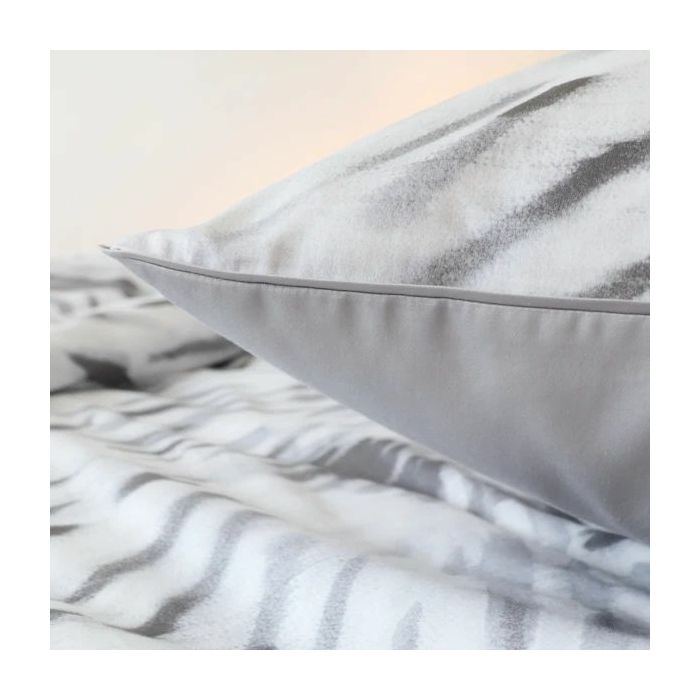 Posteljina Grey Sun izrađena je od finog pamučnog satena, izuzetno mekanog i ugodnog materijala prepoznatljivog po svom profinjenom sjaju. Ova posteljina apstraktnih uzoraka u sivim nijansama unijet će dozu elegancije u svaku spavaću sob
