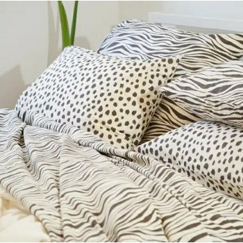 Set s gornjom plahtom Zebra izrađena je od finog pamučnog perkala koji je izrazito ugodan na koži, a dolazi u prepoznatljivom prugastom zebra printu smeđe boje na bež podlozi. Pamučni perkal je prozračan i lagan, što ga čini idealnim izborom za topl