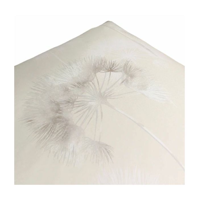 Set gornje plahte s jastučnicama Palau izrađen je od finog pamučnog satena, mekan na dodir s nježnim motivima maslačaka u bijelim i sivim tonovima na bež podlozi. Palau posteljina iznimno je podatna satenska posteljina koja će svaki krev