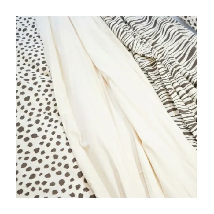 Set s gornjom plahtom Leo izrađena je od finog pamučnog perkala koji je izrazito ugodan na koži, a dolazi u prepoznatljivom leopard printu smeđe boje na bež podlozi. Pamučni perkal je prozračan i lagan, što ga čini idealnim izborom za toplija razdob