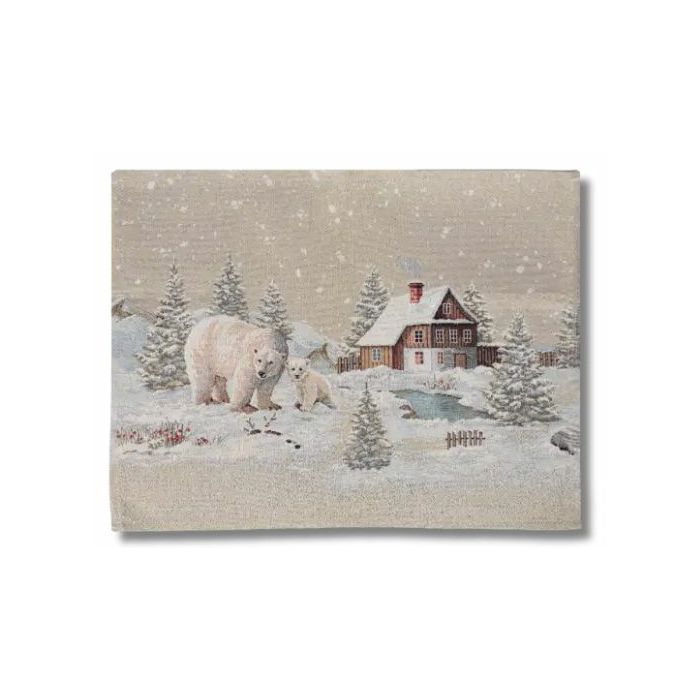 PODMETAČ BOŽIĆNI JOY GOLD 40x50 MEDVJED ISPRED KUĆE 1058
