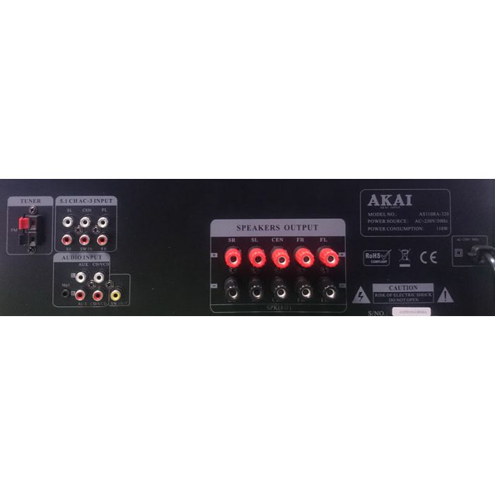 POJAČALO AKAI AS110RA-320 5.1, 300W, FM, BT, SD, USB, WDF, DALJINSKI CRNO