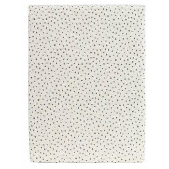 Set ravne gornje plahte i jastučnica A Pois izrađen je od pamučnog perkala, tkanine poznate po svojoj glatkoj, prozračnoj i izdržljivoj strukturi. Na bijeloj podlozi nalazi se bezvremenski točkasti uzorak, s crnim točkicama različitih ve