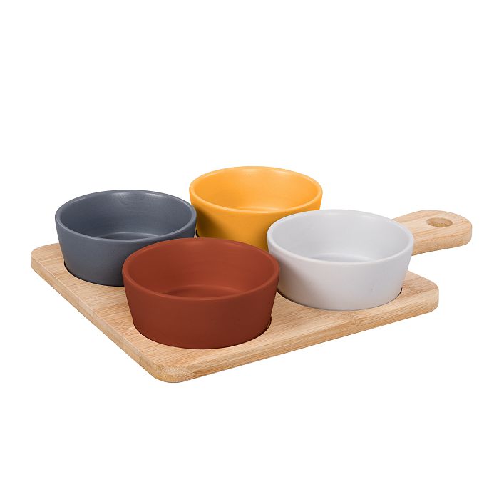 Set od 4 posude od kamenine sa nosačem od bambusa