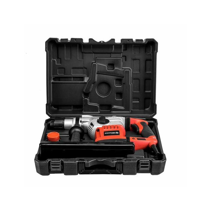 PRAKTIK Bušilica čekić PTQ034 je pouzdan alat dizajniran za razne zadatke bušenja i klesanja. Opremljen motorom snage 800 W, ovaj model nudi udarnu energiju od 2.5 J, što omogućava učinkovito bušenje kroz beton, ciglu, drvo i