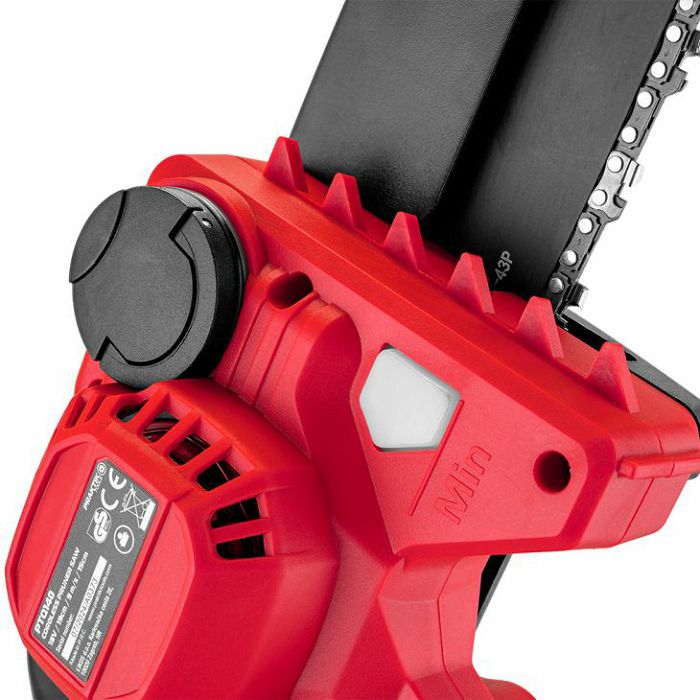 Akumulatorska mini lančana pila sa dužinom noža od 19 cm i maksimalnim promjerom rezanja od 15 cm predstavlja savršen alat za preciznu i laku rezidbu manjih grana, stabala ili drvenih materijala. Ovaj kompaktni alat omogućava jednostavno rukovanje i