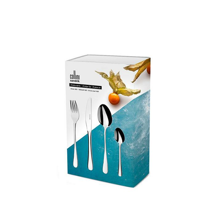 Set Segno 24/1 se sastoji od: - stolni nož 225 mm 6 kom - stolna vilica 204mm 6 kom - stolna žlica 204 mm 6 kom - žlica za desert 182 mm 6 kom Segno je kolekcija pribora za jelo od nehrđajućeg čelika 18/10 s poliranom završnom obradom. Zr