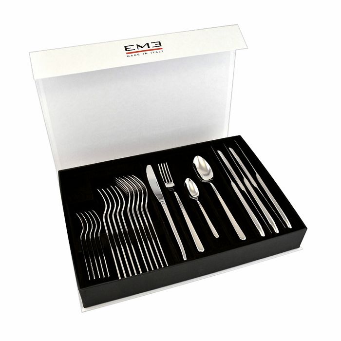 Opis:Za elegantno posluživanje obroka potreban je odgovarajući pribor za jelo za najmanje šest osoba. Set Olympe sadrži 6 žlica za juhu, 6 vilica, 6 noževa i 6 čajnih žličica u estetskom pakiranju. Izrađeno je od nehrđajućeg čelika, izdržljivo i može