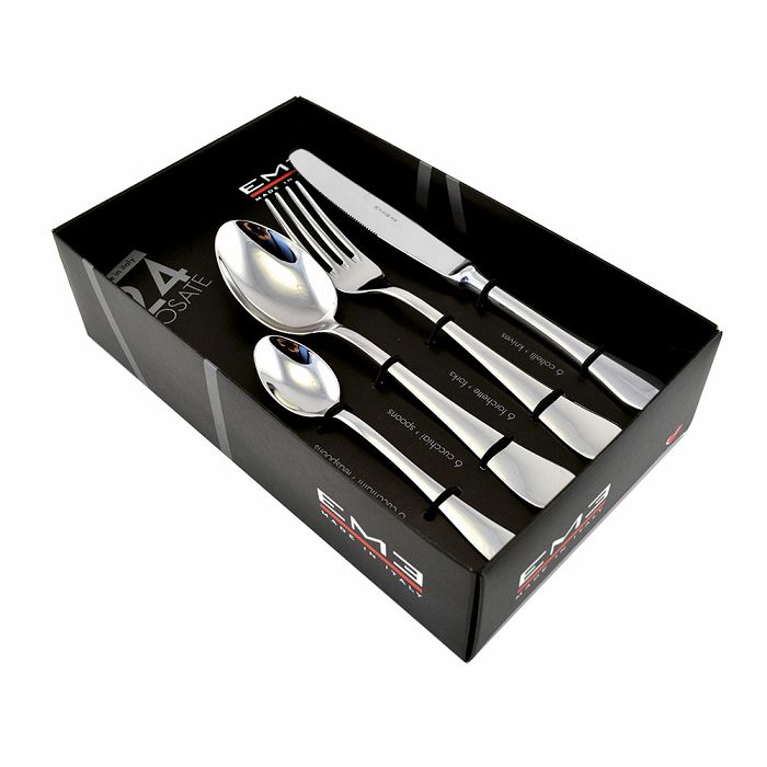 Sastav: 6 žlica,6 stolnih vilica, 6 stolnih noževa, 6 žlica za kavu.
